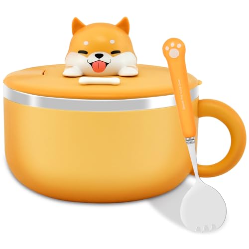 lachineuse - Omedelbar nudelskål - japansk Ramen skål och kinesiska nudlar med bestick och lock - frukostskål, soppa, ris - asiatisk presentidé Japan Kina, Cup Noodles - Orange