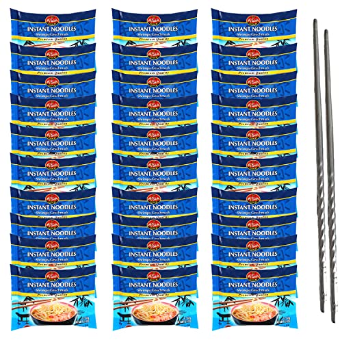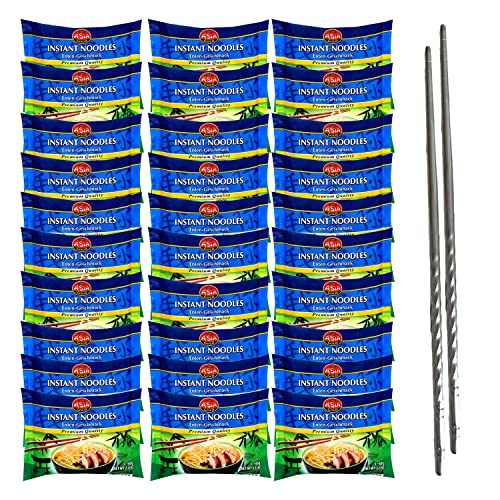 Uppsättning av 30 Asia Gold Instant nudlar ramen I smakskrift I 30 x 60 g I färdig maträtt I plus 2 uppsättningar ekologiska ätpinnar av bambu