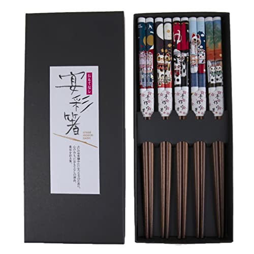 lachineuse - Geisha, färgglada kinesiska ätpinnar set - 5 par träpinnar - Japan atmosfär - sushi, ramen, nudlar och ris - Zen dekoration - japansk asiatisk kökspresent