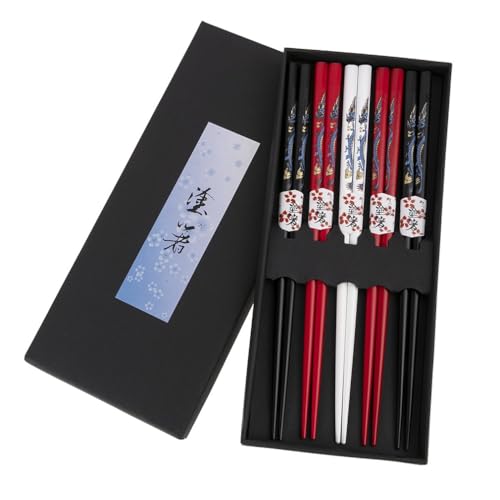 lachineuse Asiatiska ätpinnar set - 5 par färgglada asiatiska drakar - asiatiska traditioner - chopsticks - sushi, ramen, nudlar och ris - kinesisk asiatisk matgåva