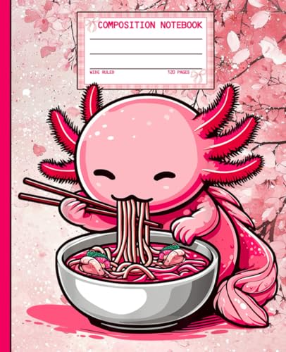 Composition Notebook: Kawaii Axolotl with Ramen Noodles, Cute Anime Style Journal for Students, School, College Girls, Teachers, and Office Desk Writing