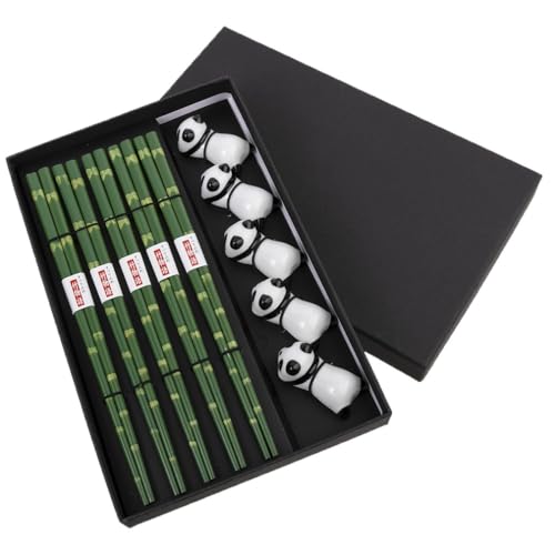 lachineuse Panda pinnar och stativ set - 5 par gröna pandor - asiatisk atmosfär - chopsticks - sushi, ramen, nudlar och ris - kinesisk asiatisk kökspresent