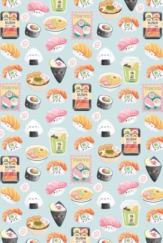 Ramen Noodles and Sushi Journal: Hardcover, 6 x 9 Inches, 180 Pages, Blank Lined Notebook, Matte Finish. Cute Kawaii Graphics, Kawaii Prints, Sushi ... Matcha Tea and Ramen, Fun Gifts for Foodies