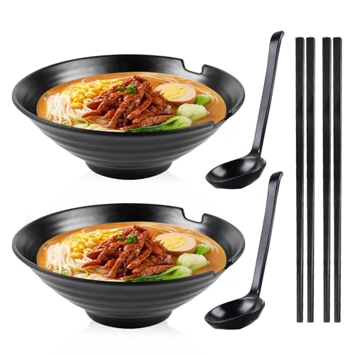 Ramen skålset, 2 stycken ramenskål med sked och ätpinnar, premium halkfria soppskålar, ramskålar 1 000 ml, stor soppskål, japansk servis set för ramar, nudlar, sallad