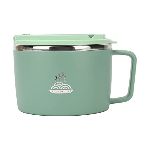 Ramen Bowl Set för mikrovågsugn, 1200 ml rostfritt stål Rapid Noodle Cooker med ätpinnar och spork, lock, handtag, mobiltelefonsfält, Instant Noodle Bowl för kontoret College (Grön)