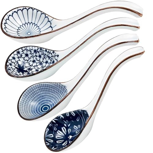 4 st soppskedar, kinesiska keramiska skedar, japansk ramensked kreativt porslin asiatiska soppskedar för Ramen Pho flingor Wonton dumpling Miso skedar set med 4