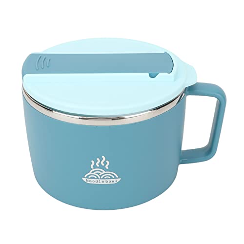 Ramen Bowl Set för mikrovågsugn, 1200 ml rostfritt stål Rapid Noodle Cooker med ätpinnar och spork, lock, handtag, mobiltelefonsfält, Instant Noodle Bowl för kontoret College (Blå)