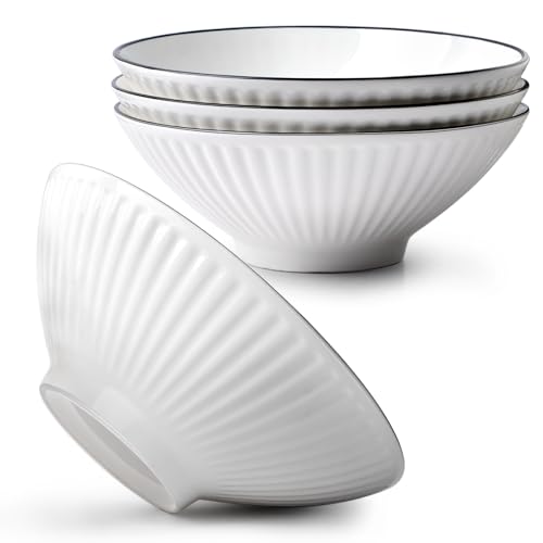 DOWAN Keramiska soppskålar, 18 cm skålset, 950 ml stora frukostskålar för kök, vit ramen-skål för nudel, porslinssalladsskålar set med 4 för sallad, frukt, diskmaskin och mikrovågsugn säker
