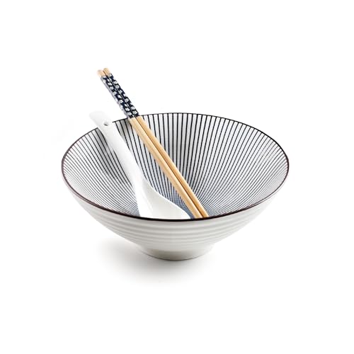 Fisura – Ramen skål "Noodles". Originell ramen skål. Japansk soppskål, 680 ml. Keramisk nudelskål. Perfekt för nudelsoppa, Pho, Udon och Soba. 19,5 cm x 8,5 cm.