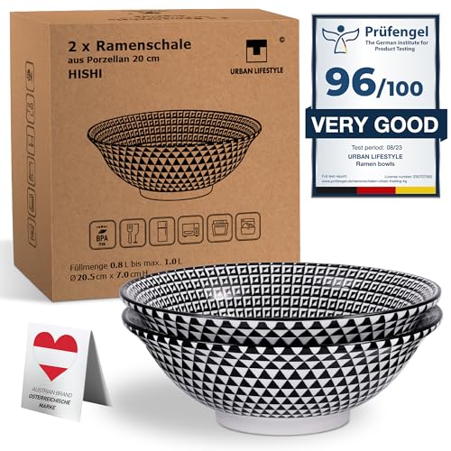 Urban Lifestyle Ramen skål 0,8-1,0 L porslin 1300°C set med 2 20 cm Ramen nudelskål japansk ramen spannmålsskål ... ramenskål kinesisk skål japansk skål poke skål (Hishi)
