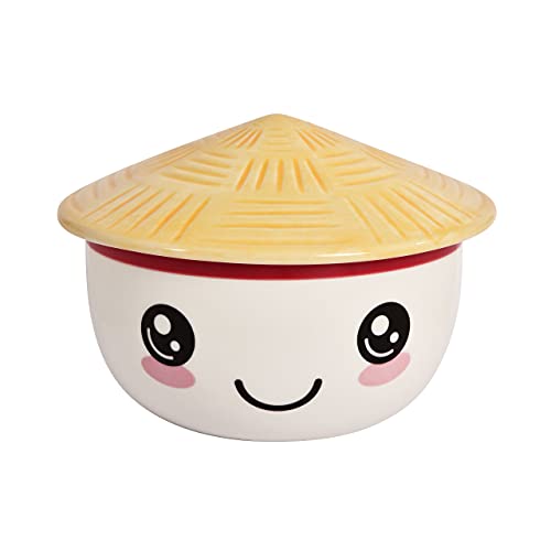 Elbenwald Kawaii-skål med lock för Anime Fans Ramen Bowl Cereal Bowl Rund Tryckt 550 ml Keramik Vit