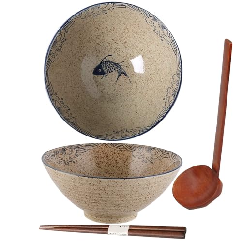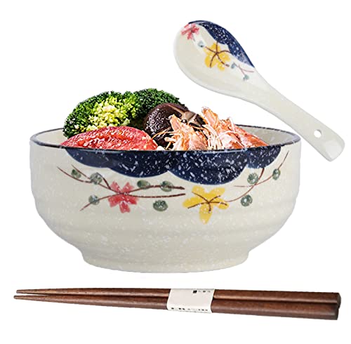 TuYines Ramenskål, japansk skål keramik, ramen skål sats, ramenskål med sked ätpinnar, japansk soppskål, vintage ramenskål, japansk porslin