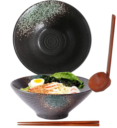 TuYines Ramenskål, japansk skål keramik, ramen skål sats, ramenskål med sked ätpinnar, vintage ramen skål av keramik, soppskålar, japansk servis