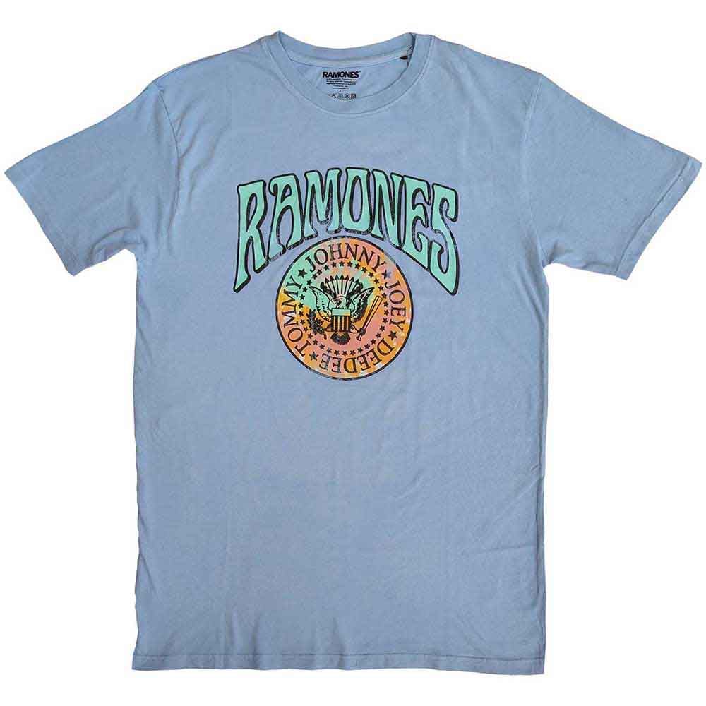 Ramones: Unisex T-Shirt/Crest Psych (Light Blue) (Small)