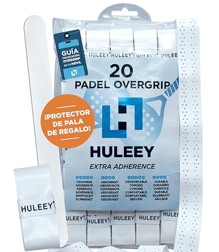HULEEY Padel Overgrip/Grepptejp – Vit perforerad – Pack 6/12/20/60 – extra klibbig, halksäker, hög svettabsorption – för padel- och tennsracket – inkl. ramskydd
