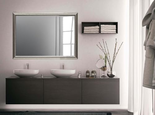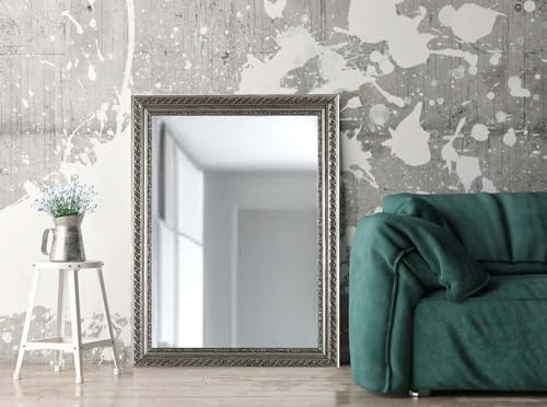 Zalena Silverblad 60 x 80 cm, ramspegel, väggspegel, designspegel, badrumsspegel, för lägenhet, gästbadrum, hall, Gadrobe, vardagsrum