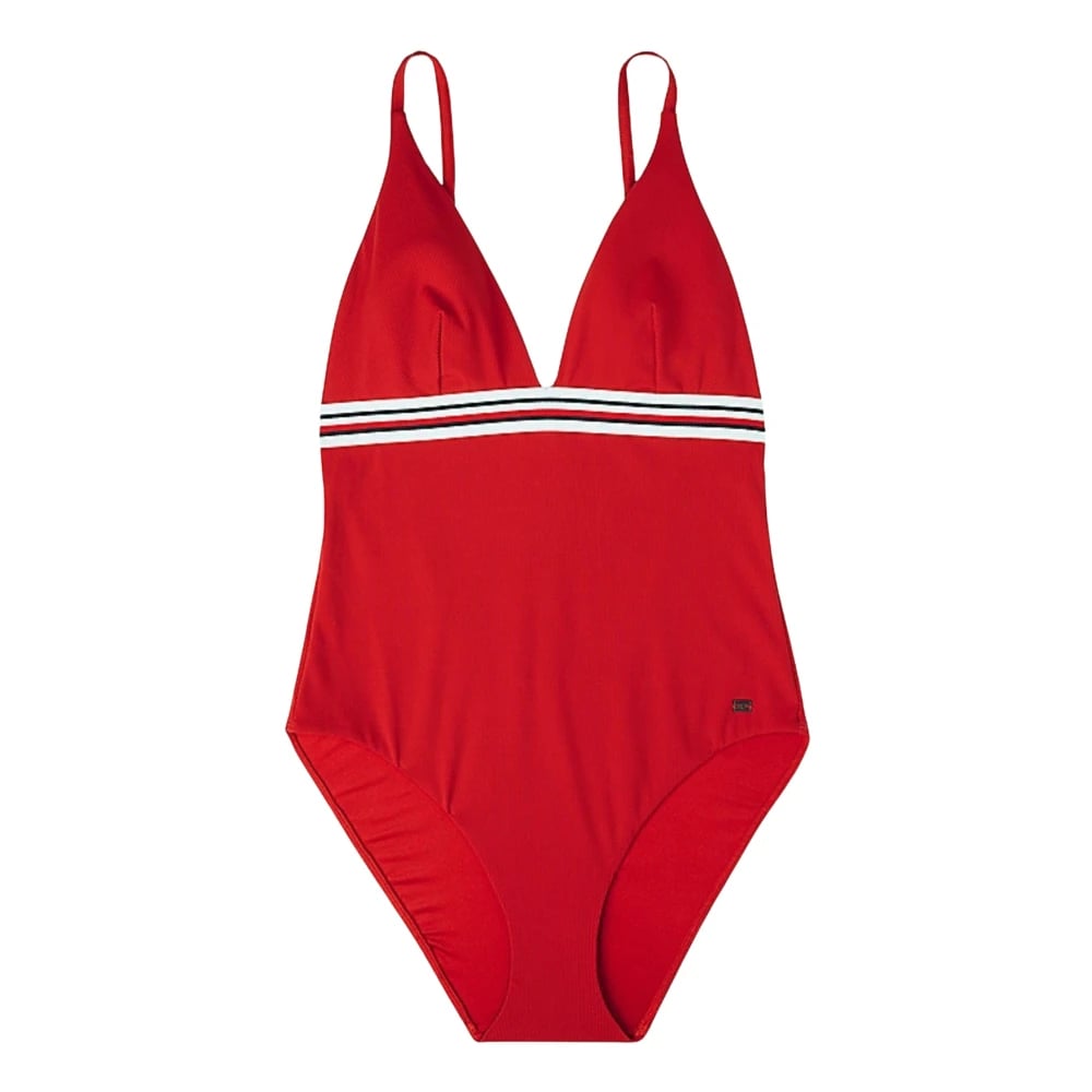 Tommy Hilfiger, Badkläder , Dam, S, Nylon, Randig baddräkt med djup V-ringning