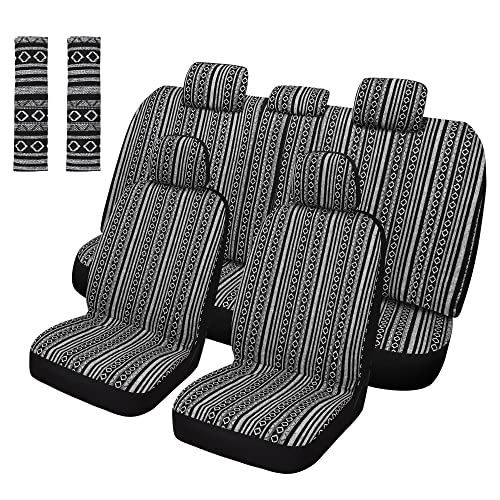 Pariitadin Baja Sadelfilt bilsätesskydd fullt set med säkerhetsbältesdynor, tvättbar andningsbar randig vävd duk sätesskydd för bilar, universell passform de flesta bilar, airbag-kompatibel, svart/vit