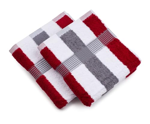 Gözze - New York randiga handdukar, uppsättning av 2, mjuka och absorberande, 100% bomull, 50 x 100 cm – bordeaux/vit/antracit