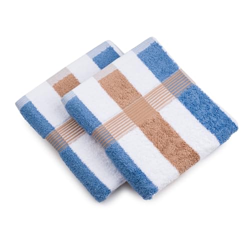 Gözze – New York randiga handdukar, set med 2, mjuka och absorberande, 100% bomull, 50 x 100 cm – rödbrun/vit/mocka