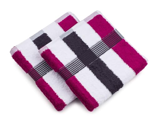 Gözze - New York randiga handdukar, uppsättning av 2, mjuka och absorberande, 100% bomull, 50 x 100 cm – cyklam/vit/grafit