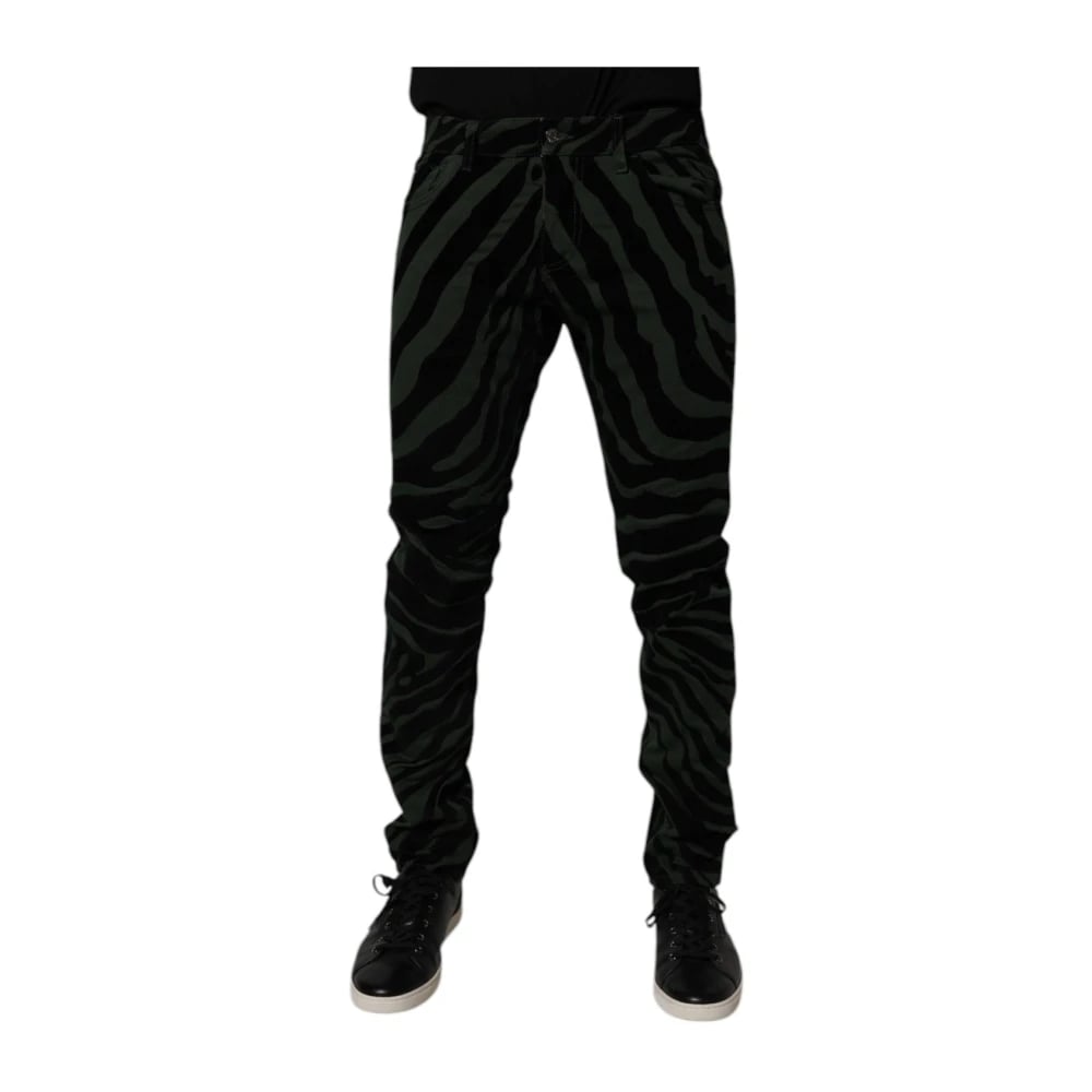 Dolce & Gabbana, Jeans , Herr, M, Denim, Randiga Skinny Denim Jeans med Logotyp