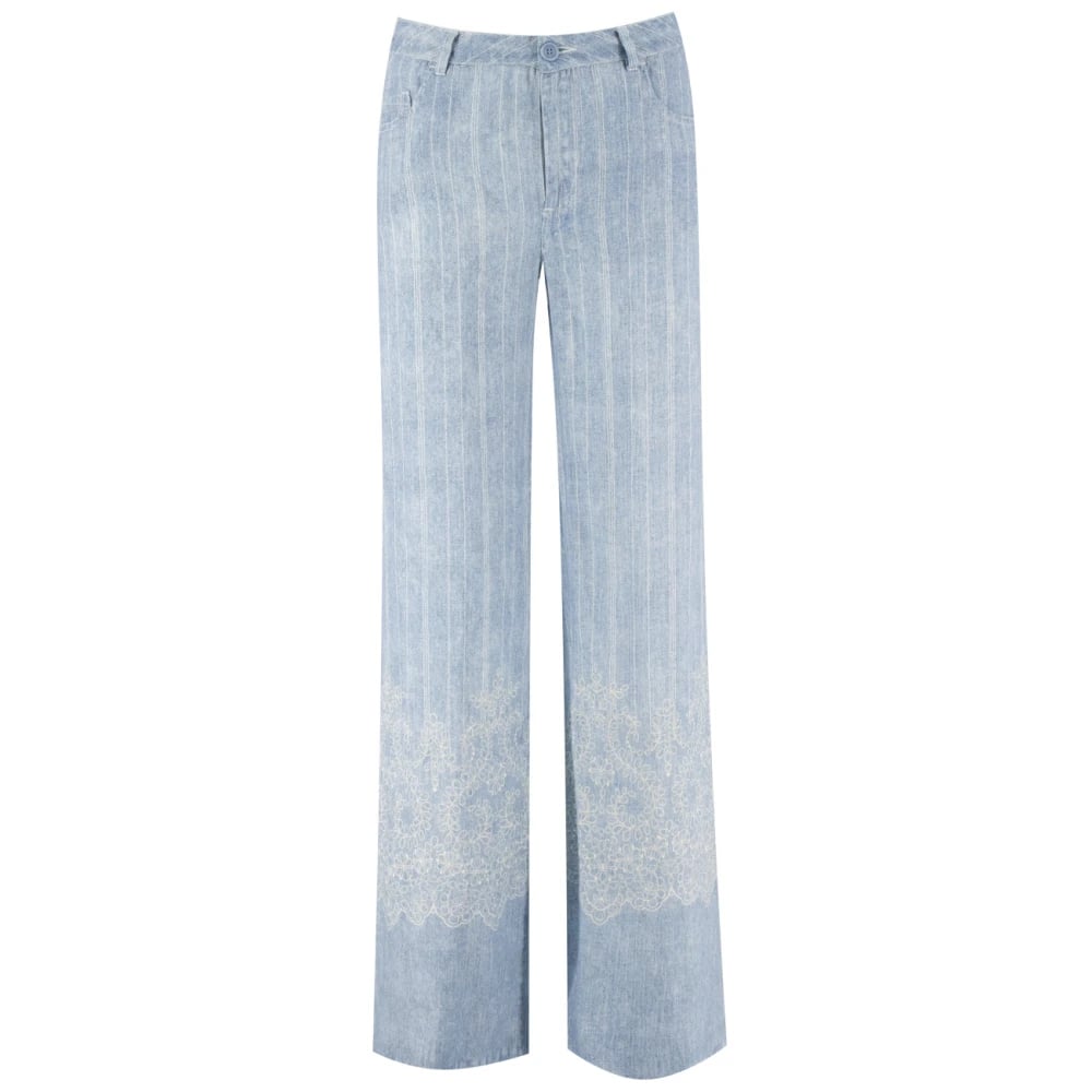 Ermanno Scervino, Jeans , Dam, M, Linne, Randiga linnebyxor med spetsdetaljer