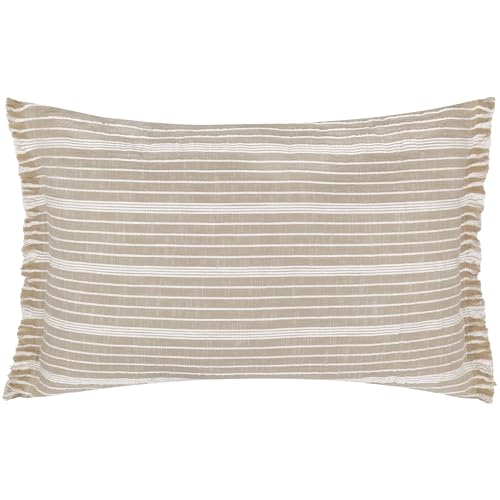 Ugn Yard Tide bomull utomhus kuddfodral – texturerat randigt trädgårdsöverdrag med volang (naturligt – endast kuddöverdrag, 60 x 40 cm)