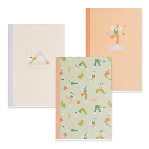 Miquelrius 3-pack insydda A5-anteckningsböcker, kartongomslag, 60 ark 80 g/m² vitt papper, anteckningsbok, vanligt, randigt och prickat, 3-pack 142 x 210 mm söta brevpapper