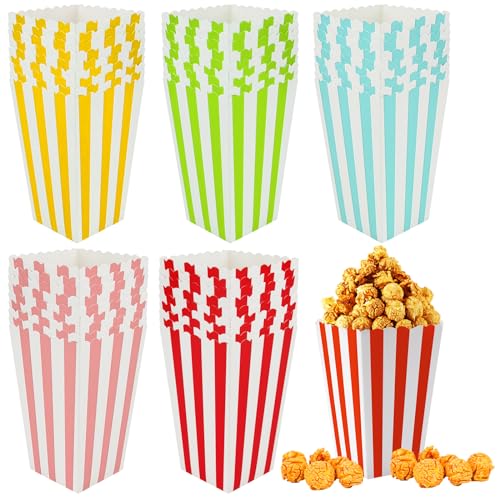 Nadisean 50 st popcornlådor små, 5 färger popcornväskor, retro popcornhink, kartonger popcornlåda, randigt papper popcorn sött godisbehållare kartong för filmkväll, godis, fest