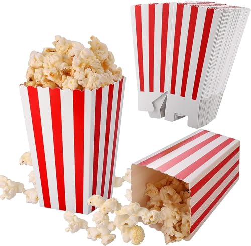 Zocipro 50 st popcornlådor, randigt papper popcorn favoritlådor godisbehållare, retro popcornväskor för fest, födelsedag, filmkväll, övernattningsgodis 9,3 x 15,5 cm