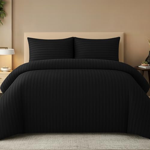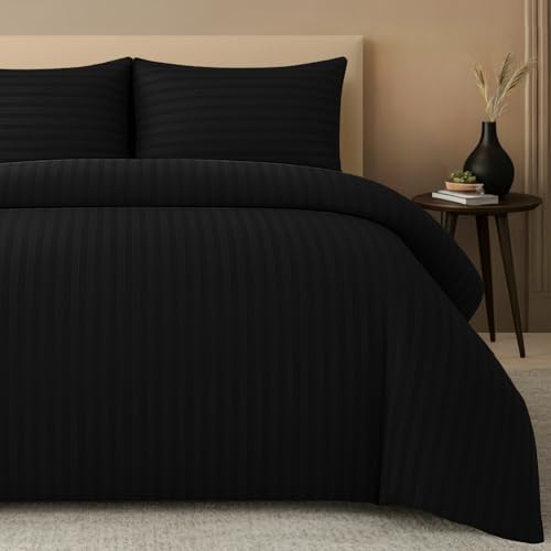 Pamposh Bäddset, satin, randigt, i hotellkvalitet, påslakan, allergivänligt och ultramjukt bäddset i mikrofiber, dubbelsäng