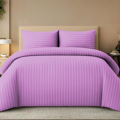 Sleepdown texturerat randigt lila påslakan och örngott set sängkläder täcke fodral enkel dubbel kung super kung (kung)
