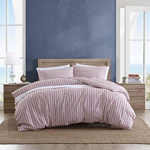 Nautica- King påslakan, vändbara sängkläder i bomull med knappstängning, avslappnad heminredning för alla årstider (randigt röd, kung)
