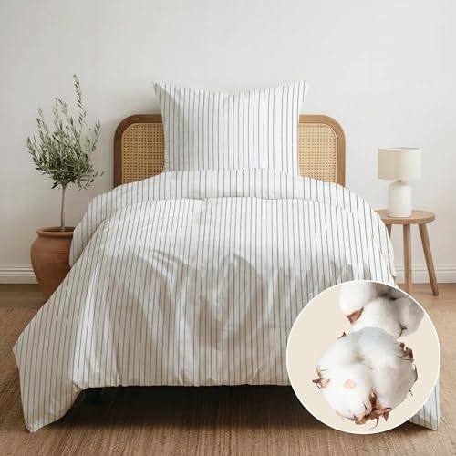 Dreamzie 1 påslakan 135x200 med 1 örngott 80x80 – Randigt mönster – Sängset i bomull – Dragkedja – Oeko-Tex – Tvättbart 60°C – Sängkläder för 1 person