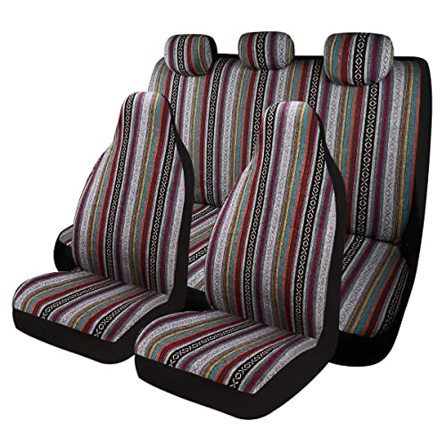 VarCozy Baja Sadelfilt sätesöverdrag fullt set, framsätesskydd och delade bakre bänkstolskydd för sedan, SUV, lastbil, universellt randigt vävt bilsätesskydd, andningsbar, airbag kompatibel