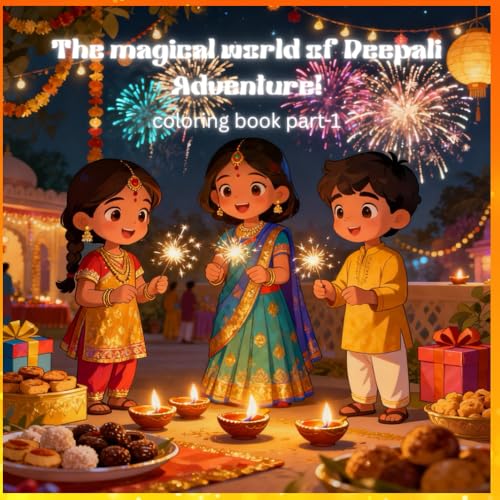 The magical world of Deepali Adventure! - coloring book part-1: Kids will enjoy coloring diyas, rangoli patterns, sweets, fireworks, families ... traditional outfits, and festive decorations