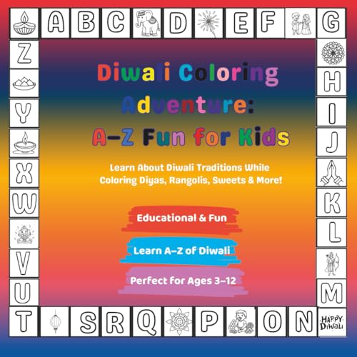 Diwali Coloring Book for Kids: A–Z Festival of Lights Adventure: Learn About Diwali Traditions, Diyas, Rangoli, Sweets & More | Educational & Fun Activity Book for Ages 3–12
