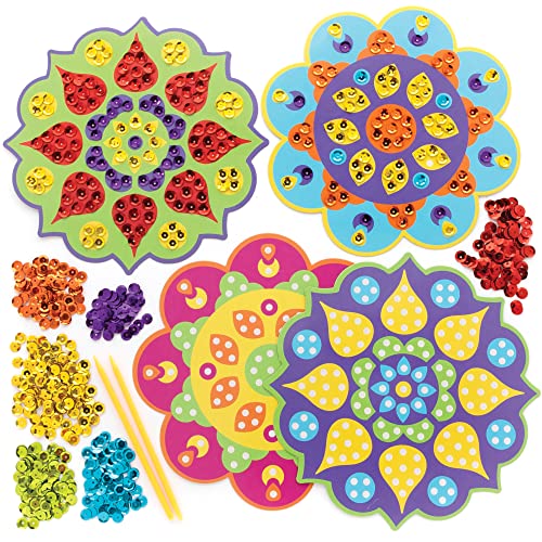 Baker Ross FE840 Rangoli paljett hantverkskit – paket med 4, gör dina egna barns konstset, kreativa aktiviteter för barn, dekorera dina egna konst- och hantverksprojekt