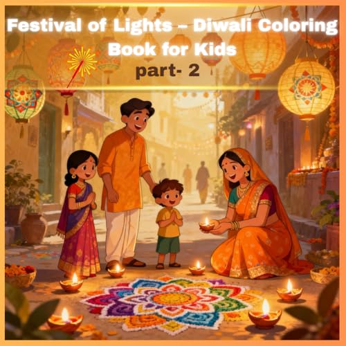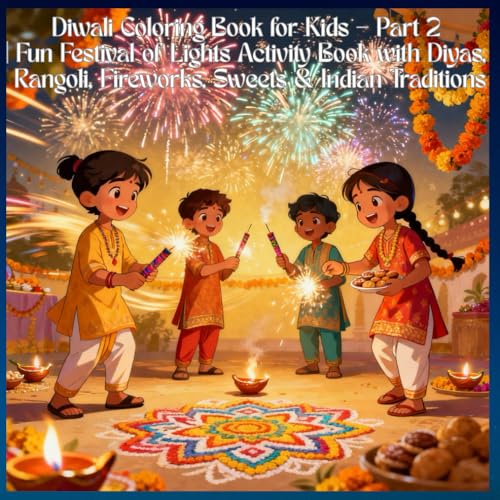 Festival of Lights – Diwali Coloring Book for Kids- part 2: Fun Rangoli, Diyas, Fireworks & Festive Scenes to Color