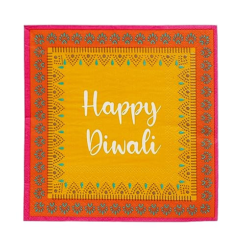 Diwali Pappersservetter | Återvinningsbara servetter för Eid-firande | Engångs servis för Bollywood-temafest | Mandala/Henna/Rangoli design gul, orange, rosa – premiumkänsla 20-pack