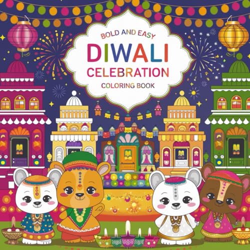 Bold and Easy Diwali: Simple and Clear Designs for the Festival of Lights with Rangoli Patterns, Diyas, Happy Hindu Holiday Art, & Cultural Fun for Mindfulness & Relaxation Coloring Book For Kids