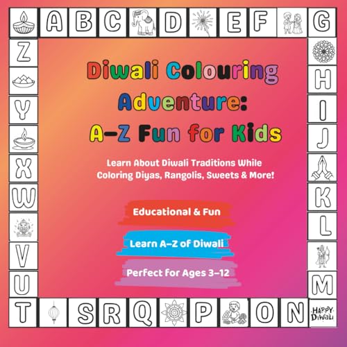 Diwali Colouring Book for Kids: A–Z Festival of Lights Adventure: Learn About Diwali Traditions, Diyas, Rangoli, Sweets & More | Educational & Fun Activity Book for Ages 3–12