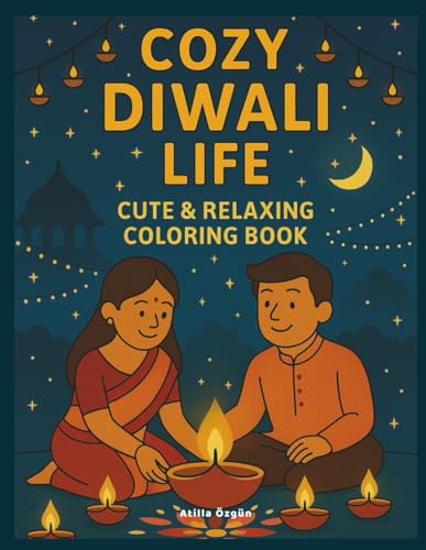 Cozy Diwali Life - Cute & Relaxing Coloring Book: Ausmalbuch für Erwachsene und Kinder: Entspannendes Malbuch mit indischen Festen, Rangoli-Mustern, ... - Achtsamkeit, Stressabbau & kreative Auszeit