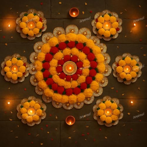 Treeratan Gula tema Rangoli mattor för heminredning, set med 7, Diwali presentdiya, värmeljus diya