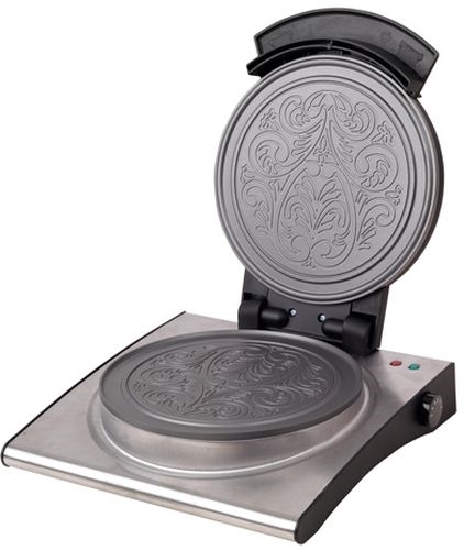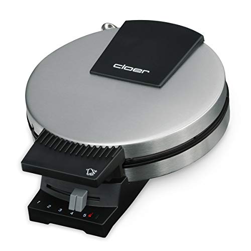 Cloer 289ESR Rånjärn för glassvåfflor, Våffeljärn, 800 W, Bakyta 15 cm Ø, sockerbeständig dubbelbeläggning, tunga bakplattor, akustisk färdigrapportering, mattat rostfritt stålhölje