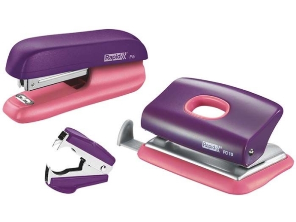 Rapid Häftapparat & hålslag Mini set F5+FC10+C2 Blister Rosa/gul