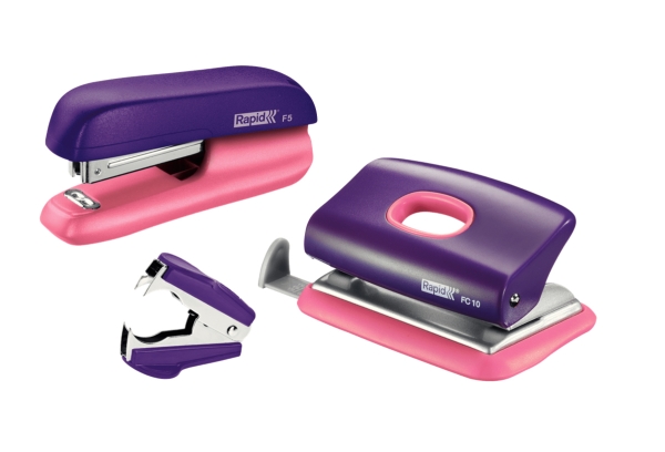 Rapid Häftapparat & hålslag Mini set F5+FC10+C2 Blister Lila/aprikos