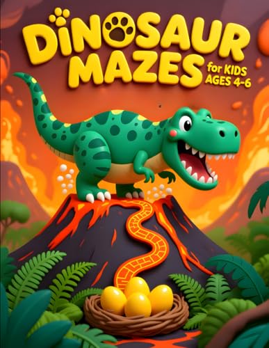 Dinosaur Mazes for Kids Ages 4-6: 50 Big Print Dino Trail Puzzles: T-Rex Hunts, Stego Trails, Raptor Rescues – Easy & Medium Levels