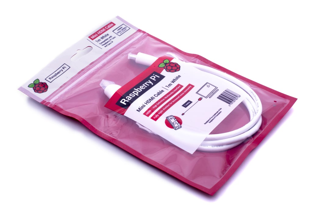 Official Raspberry Pi Mini HDMI Adaptor Cable - 10cm - White